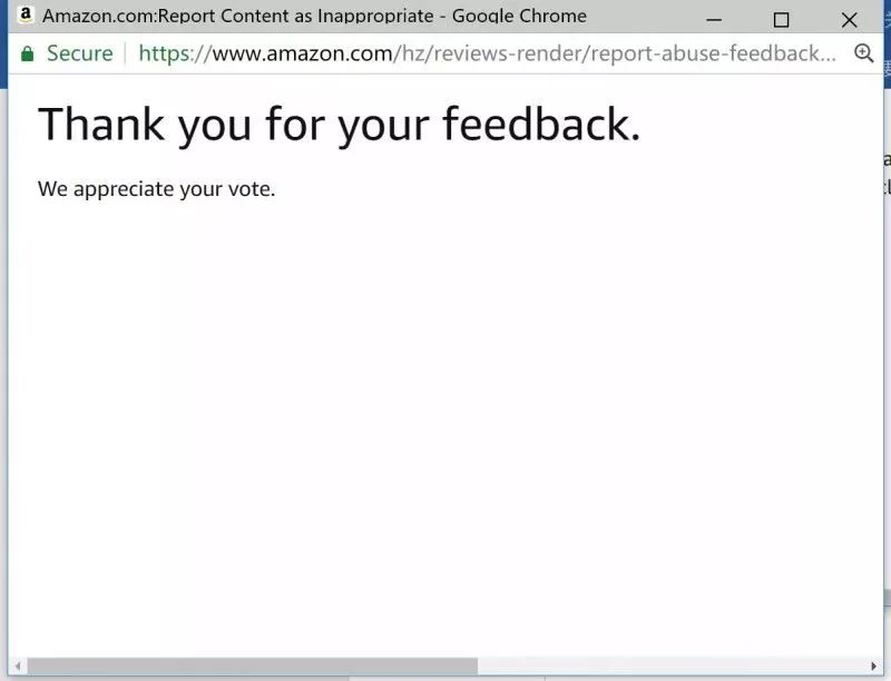 大家进入亚马逊前台那个差评的界面,如下图所示,有一个“Report abuse” 的按钮。 然后我们点击这个“Reportabuse”按钮,会出来以下画面。我们可以根据下面提示,直接点击红圈里面的report按钮。 上面其实说的很清楚了,如果你觉得这个review不合适的话,我们会把这个review移除,请点击report让我们知道。大概点击完了report,就是如下这个画面。那么这样就完成了一个前台举报的整体流程。 其实看过整个流程大家应该知道,这种模式目的是为了触发亚马逊的review预警机制,一旦整个report数量到一定数值,激发了预警机制,亚马逊就会人工去处理这个review.如果这个号就是那种专门害人小黑号,是经不过人工审查的,基本上会被直接K掉。 而且,经过我们测试发现,基本上如果是直评的话,100以内的report就有很大的几率让亚马逊删掉这个直评。但是验证购买的评价,则需要500+左右,最后还要辅助后台申诉渠道一起双管齐下。
